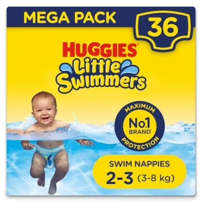 Huggies Little Swimmers, Swim Nappies Size 2 3, 36 Pants Adjustable Tabbed Sides for Secure Fit Maximum Protection Swimming with Fun Designs