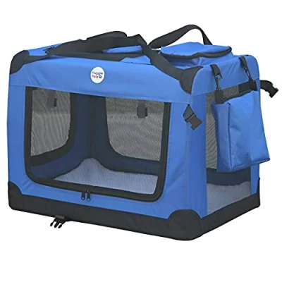 HugglePets Blue Fabric Dog Crate Carrier X Large 82cm, Foldable with Fleece Mat