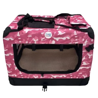 HugglePets Pink Camo Fabric Dog Crate Carrier X Large 82cm, Foldable with Fleece Mat