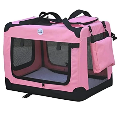 HugglePets Pink Fabric Dog Crate Carrier X Large 82cm, Foldable with Fleece Mat