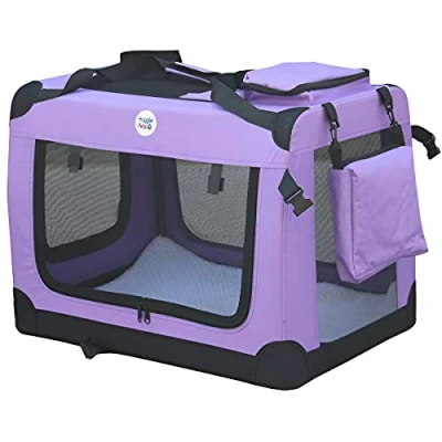 HugglePets Purple Fabric Dog Crate Carrier X Large 82cm, Foldable with Fleece Mat