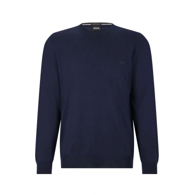 Botto-l Crew Neck Knitwear Dark Blue A versatile sweater by Boss that we know you'll love. In a dark blue colourway, featuring an embroidered logo to the left chest, it is an elegant design. Cut to a regular fit with a crewneck finish, it is a great layering piece. Crafted from 100% Virgin Merino Wool, it is soft to the touch and a highly comfortable fit. 100% Virgin Merino Wool Crew Neck Long Sleeved Ribbed Cuffs Standard Length Style - 50476364