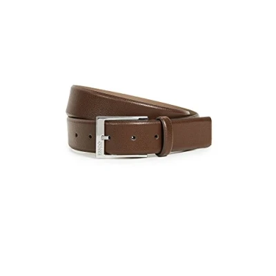 HUGO Men's Gellot Grainy Leather Belt, Dark Brown, 32