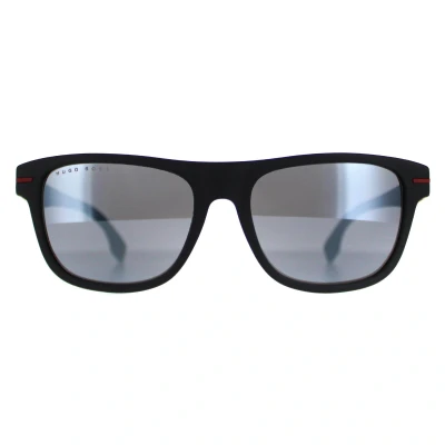 Hugo Boss Rectangle Mens Matte Black Red Silver Mirror BOSS 1322/S Sunglasses are a stylish square style crafted from premium acetate, these frames promise durability and a comfortable fit, merging reliability with contemporary style effortlessly. Showcasing subtle yet defining details, such as the discreet brand logo adorning the temples, these sunglasses epitomize Hugo Boss's signature design ethos, reflecting superior craftsmanship and a commitment to modern aesthetics. Providing UV protection while making a distinctive fashion statement, these sunglasses elevate any outfit, adding a touch of refinement and confidence.