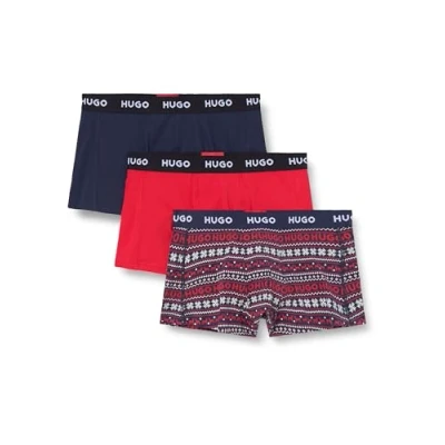 HUGO Design 3 PACK Trunks, Men's, Size: Small, Black/red/grey