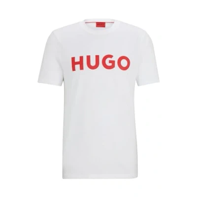 Offered in a straight fit, this T-shirt is crafted in pure-cotton jersey and printed with a contrasting HUGO logo across the chest. Regular fitCrew neckShort sleeves 100% Cotton 50467556