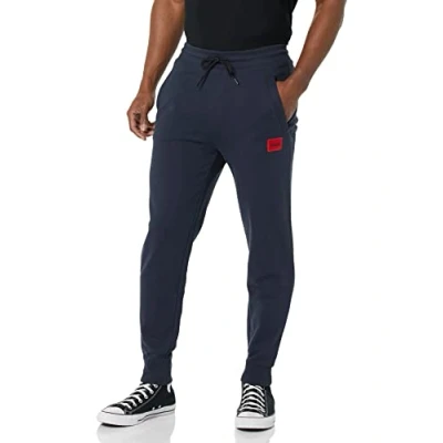 HUGO Men's Regular Fit Square Logo Jersey Drawstring Joggers Sweatpants, Raven Black, X Large