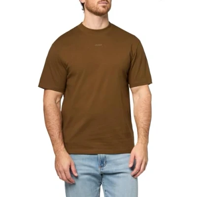 HUGO Men's Small Center Logo Jersey Short Sleeve T Shirt, Dark Sepia, Large