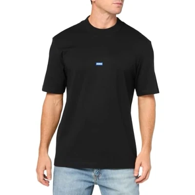 HUGO Men's Small Logo Block Cotton T Shirt, Black Pepper, Medium