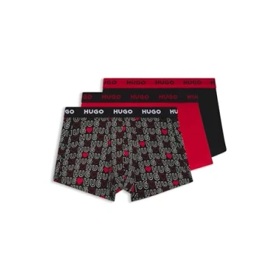HUGO Men's Trunk Triplet Design Triple Pack Tight Fit Stretch Cotton Boxer Shorts with Short Leg and Logo Waistband, Open Miscellaneous 969, M