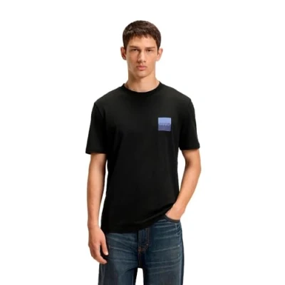 HUGO Mens Dapusi Cotton Jersey T Shirt with Split Logo Print Black