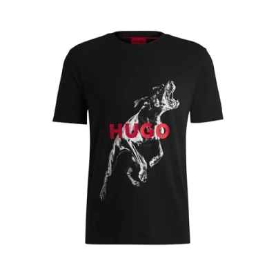 HUGO Mens Deyladec Regular fit T Shirt in Cotton with Animal Graphic