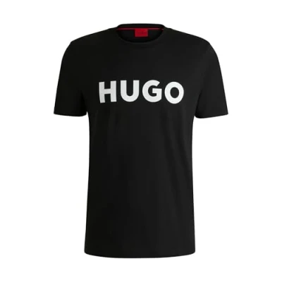 HUGO Men's Dulivio T Shirt Regular Fit Cotton Jersey with Contrasting Logo, Black, Medium