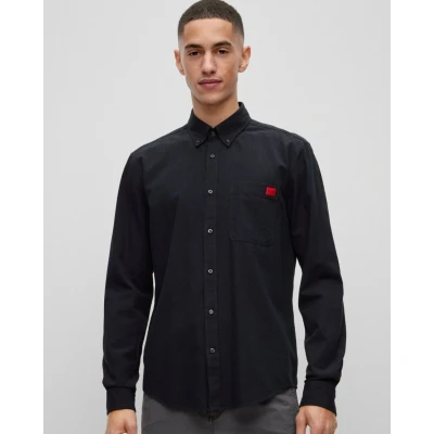 A smart-casual shirt by HUGO Menswear, topped with a button-down collar. Cut to a defined fit, this versatile shirt is crafted in washed Oxford cotton for timeless style. A red woven HUGO logo at the chest pocket adds brand DNA to this piece. Slim fitButton-down collarPatch chest pocketsSquared cuffsStandard length 100% Cotton 50479302