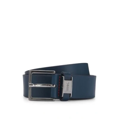 HUGO Mens Gand Sz35 Italian leather belt with logo plaque buckle