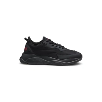 HUGO Mens Leon Runn Mixed Material Trainers with Faux Leather Size 8 Black