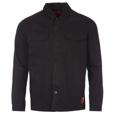 Hugo Mens Logo Patch Organic Cotton Twill Oversized Overshirt Black Size X Large