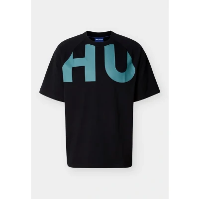 HUGO Mens Nalftee Loose fit T Shirt in Cotton Jersey with Wraparound Logo Black