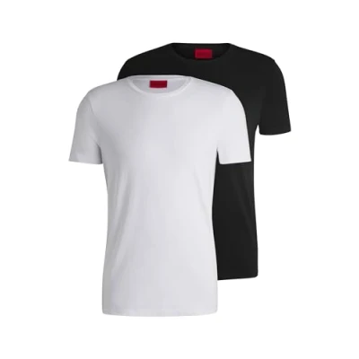 Two slim-fitting T-shirts by HUGO Menswear, crafted in stretch jersey with a logo detail at the back neck. By purchasing this product, you are contributing to protecting the environment and sustainable cotton farming in Africa. CmiA is committed to improving the living and working conditions of African cotton farmers and to preserving nature. Slim fit Crew neck Short sleeves 96% Cotton, 4% Elastane 50325440
