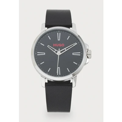 THREE-HAND QUARTZ MOVEMENT – SIMPLE AND PRECISE.This HUGO men’s watch features a three-hand quartz movement, offering reliable everyday timekeeping in a clean, understated format. 41MM STAINLESS STEEL CASE – MODERN AND VERSATILE.The 41mm stainless steel case delivers a balanced, contemporary silhouette that transitions effortlessly from workwear to casual looks. BLACK SUNRAY DIAL – MINIMAL AND REFINED.The black sunray dial adds subtle depth and light play, enhanced by graphic markers that give this watch its distinctive, modern character. BLACK LEATHER STRAP – REFINED #SMOOTH STYLE.The smooth black leather strap reinforces the clean, understated character of the HUGO #SMOOTH collection, offering comfortable wear and an effortlessly polished, work-ready look. 3 ATM WATER RESISTANCE – MADE FOR DAILY LIFE.Water resistant to 3 ATM: suitable for splashes and rain. Not suitable for showering, swimming, or submersion.