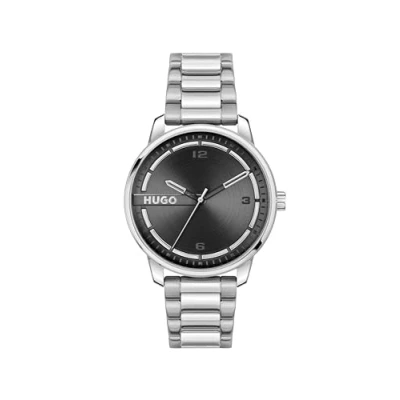 HUGO Stamp Watch silvercoloured/black, Men's, Size: One Size, Silver coloured/black