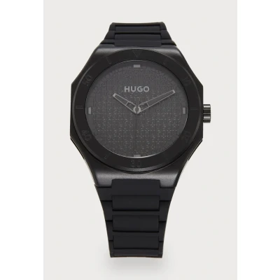 HUGO Three Hand Quartz Movement Watch for Men #Grail Light Collection with Black Silicone Bracelet 1530396