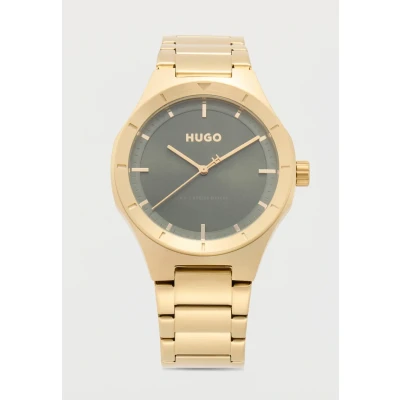 HUGO Three Hand Quartz Movement Watch Gold Colored #LIT Collection with Stainless Steel Bracelet 1530449