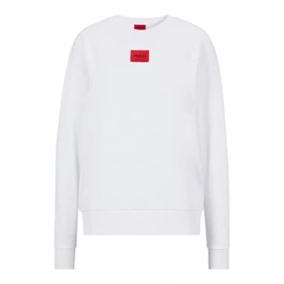 HUGO Womens Nakira redlabel Regular fit cotton sweatshirt with logo label White