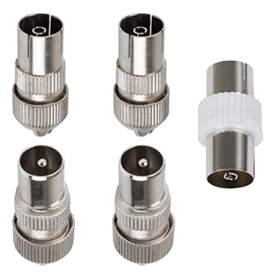 【Coaxial Connector Package contents】:Male TV Aerial Connector plug x 2,Female TV Aerial Connector plug x 2,Female to Female TV Aerial Coaxial Coupler x 1 【Coaxial Connector Material】:Zinc alloy and nickel plated, with a solder free clamping screw. Anti-oxidation, less signal loss, high transfer speed, durable and long-lasting use. 【Convenient to Install】:Connecting cables to your device without any effort or hassles you need a F coax connector. Easy and simple to connect to your cables without professional tools. 【Application Device】:Compatible with Satellite, TV Cable, Internet cable, antenna cable, A/V equipment, wall port or digital audio/video component, and other Coaxial uses. 【High Adaptability Co-axial Connectors】:Coaxial cable connectors for more equipment and applications. Exceptional quality and extremely low signal attenuation.