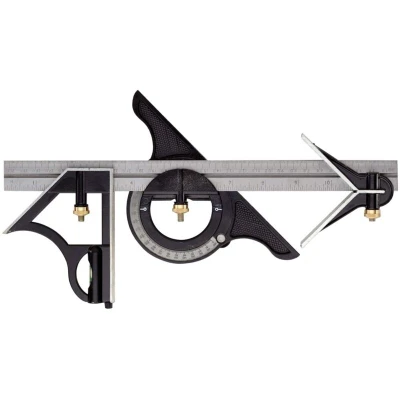General description This heavy-duty combination square set is designed for versatile use in woodworking and metalworking projects. It functions as a try square, mitre square, depth gauge, and marking gauge, providing precise measurements and markings. The set features a rust-resistant, die-cast stock and a ground-edged rule for accuracy. It includes a center head for locating and marking the centers of circular objects and a graduated protractor head that can rotate 360 degrees for measuring and constructing angles. Technical specifications Material: Rust-resistant die-cast metal Length: 300mm / 12 inches Features: Ground edges and ends on the rule, 360-degree rotatable protractor head Compatibility and accessories Suitable for woodworking, metalworking, and general construction tasks Includes combination square, center head, and protractor head Installation No installation required; ready to use out of the box Usage Use the try square for checking right angles Use the mitre square