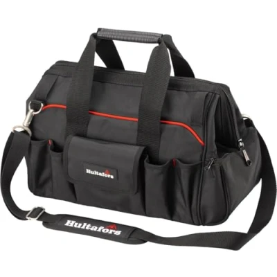 ManoManoThe Hultafors Craftsman's Open Wide Tool Carrier opens wide and stays open thanks to a frame, giving you easy access to your tools while you work. It has a large compartment with multiple tool holders and two zippered pockets for small items and bits. It closes easily with a zipper to protect your tools. The zippers are made of nylon with durable metal pullers that are easy to grip, even with gloves on. Made from extremely durable ballistic polyester, 1680 Denier which gives it maximum wear resistance and longevity. The rubber handles provide a comfortable grip. It also comes with an adjustable shoulder strap. Specifications: Dimensions: 50 x 27 x 30cm