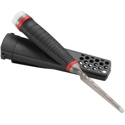 General description The Hultafors HDC8 Heavy-Duty Chisel is designed for demanding tasks requiring strength and precision. It features a forged one-piece construction with a continuous I-profile for maximum breaking strength and efficient power transmission. The 8mm cutting edge offers a good balance between sharpness and durability, allowing for precise, parallel cuts. Technical specifications Blade diameter: 8mm Material: Forged steel Handle: Santoprene with ergonomic grip Striker: Impact-resistant nylon (replaceable) Compatibility and accessories Includes a holster for easy carrying Holster can be attached to belts or work clothing Installation No installation required; ready to use out of the box Usage Use for heavy-duty chiseling tasks requiring strength and precision Can be used to cut parallel to flat surfaces Replace the nylon striker when worn Other information Holster can be modified if necessary for thicker belts