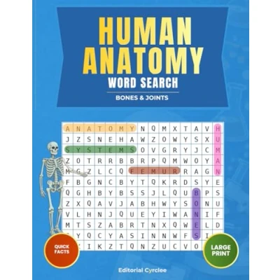 Human Anatomy Word Search: Bones & Joints: Large Print Educational Puzzles for Medical Nursing Students, Teens and Adults Ideal Gift Seniors Curious Learners