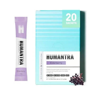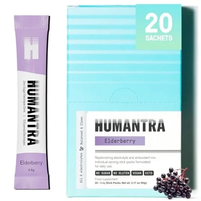 Humantra Electrolyte Packets Zero Sugar W/ 6 Electrolytes Powder (20 Count, Elderberry)