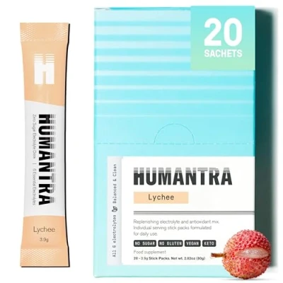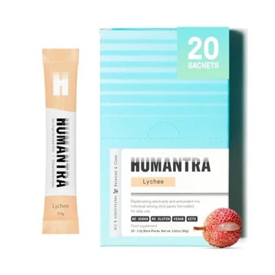 Humantra Hydration Packets Zero Calorie, Sugar Electrolyte Multiplier w/Essential Minerals & 6 Electrolytes Powder (20 Count, Lychee)