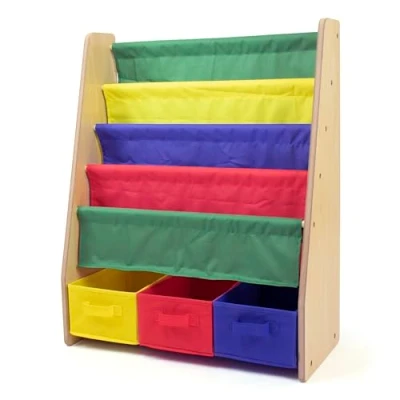 Perfect Kids Bookshelf: This toddler bookshelf displays book covers facing forward for easy identification. The child-friendly design encourages organization and reading skills, making it an ideal book shelf for kids' rooms, nurseries, and playrooms Ample Storage Space: With four deep fabric pockets, this kids' bookshelf neatly stores storybooks, board books, coloring books, and magazines. Plus, three removable, collapsible bins offer easy toy storage, ensuring quick and hassle-free clean-up. Space-Saving Design: This kids bookshelf with storage is perfect for small spaces, bedrooms, and playrooms. Measuring 25"W x 11"D x 31"H, it provides ample storage while keeping your child’s space organized and clutter-free, ideal for toddler needs. Durable and Safe Construction: Made from sturdy engineered wood, this bookshelf for kids is built to last. Rounded corners ensure safety. Easy to assemble with all hardware included, making it a reliable choice for baby bookshelves and toy storage. Encourages Independence: The front-facing design of this children’s bookshelf lets kids easily access and organize their books. This promotes tidiness and builds a sense of responsibility, making it perfect for fostering independence.