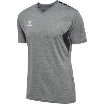 hummel Authentic PL Jersey S/S Sports T Shirt Men's Short Sleeve Men Regular Fit Made of 100% Recycled Polyester Breathable and Quick Drying Grey Melange