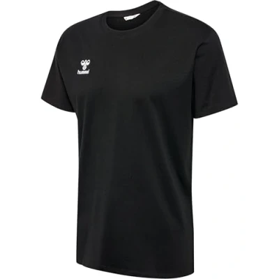 hummel GO 2.0 Men's Short Sleeved Sports Shirt, Training Shirt for Fitness, and Leisure, Made from 100% Organic Cotton, Comfortable Fit, Stretch Jersey Fabric Crew Neck Black