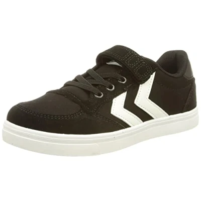 Hummel Trainers Boys & Girls Slimmer Stadil Low JR Unisex Children's with Fastening Robust Canvas and Suede Shoes Comfortable Fit, Black, 14 UK