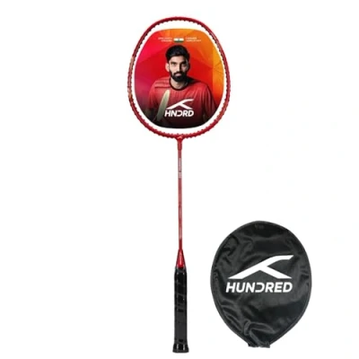 HUNDRED Powertek 200 PRO Graphite Strung Badminton Racket with Full Cover For Intermediate Players Weight: 92 grams Maximum String Tension 18 20lbs