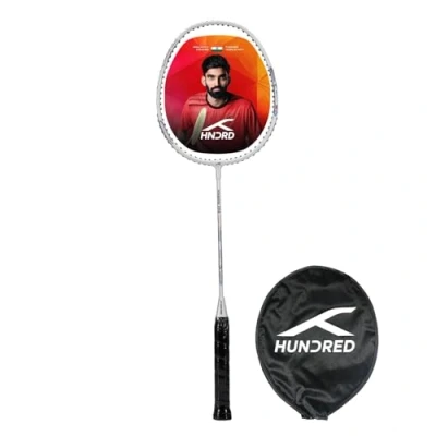 HUNDRED Powertek 200 PRO Graphite Strung Badminton Racket with Full Cover For Intermediate Players Weight: 92 grams Maximum String Tension 18 20lbs