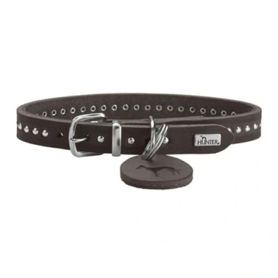 HUNTER Aalborg Style Dog Collar Colour: Dark Brown Greased Full Cowhide Leather Robust Comfortable Stylish Studded Trim Made in Germany Size 32