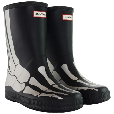 Hunter First Reflective Kids Black Wellington Boots – a perfect blend of safety, style, and durability for the youngest adventurers. Designed with little ones in mind, these boots not only keep their feet dry on rainy days but also add a playful touch with reflective detailing. Here's a detailed description highlighting the key features of these boots: Child-Friendly Design: The Hunter First Reflective Kids Boots are crafted with the comfort and safety of little feet in mind. The design is specifically tailored for children, providing an easy-to-wear, lightweight, and flexible fit. Reflective Detailing: Safety meets style with the reflective detailing on these boots. The black surface comes to life when exposed to light, ensuring enhanced visibility in low-light conditions. This feature adds an extra layer of protection, making your child more visible during evening walks or gloomy weather. Waterproof Protection: Let your little ones splash and play without worry. These Wellington boots are constructed with high-quality, waterproof materials, keeping their feet dry and comfortable in rain or puddles. The durable design ensures long-lasting performance, even with active play. Easy On and Off: The pull-on style with a convenient pull tab makes these boots easy for kids to put on and take off independently. Say goodbye to struggles with laces or complicated closures – these boots are designed for hassle-free wear, promoting independence for young adventurers. Comfortable Lining: The interior of the boots is lined for added comfort during extended wear. The soft lining helps keep little feet cozy, making these boots a reliable choice for all-day adventures, whether it's a walk in the park or exploring nature trails. Durable Construction: Built to withstand the energy and enthusiasm of active kids, these boots feature a sturdy construction that can handle rough and tumble play. The high-quality rubber material ensures durability, making them a reliable companion for various outdoor activities. Grip and Stability: The treaded outsole provides excellent grip and stability on different surfaces, ensuring that your child can confidently explore various terrains without slipping. Whether it's wet grass, mud, or pavement, these boots offer reliable traction. Easy to Clean: Parents will appreciate the easy maintenance of these boots. The smooth surface allows for quick and simple cleaning – just wipe off any dirt or mud, and they're ready for the next adventure. Equip your little explorer with the Hunter First Reflective Kids Black Wellington Boots – where safety and style come together to create a footwear experience that both kids and parents will love. Let them step out in confidence, ready for whatever outdoor fun comes their way.