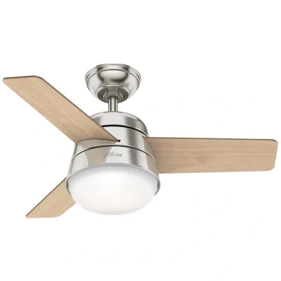 HUNTER Fan Finley, 36 inch, Indoor Ceiling with Light and Handheld Remote, Brushed Nickel Finish, 3 Reversible Blades in American Walnut Natural Wood, Ideal for Summer or Winter, Model 50643