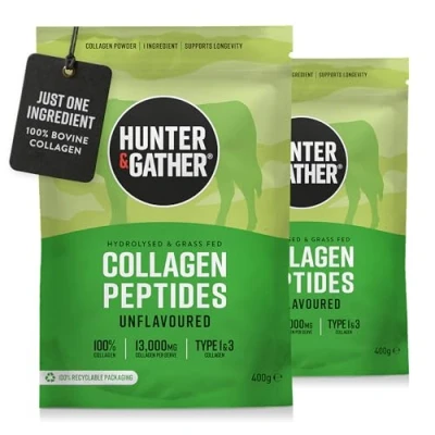 Hunter & Gather Bovine Collagen Powder Twin Pack Pure Unflavoured Premium Hydrolysed Peptides for Hair Skin Nails Muscles Supplements Women and Men
