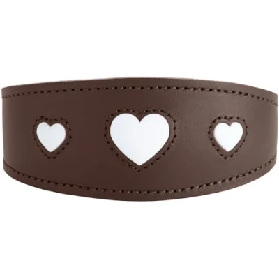 HUNTER Greyhound Collar Love, Colour: Brown/Black, Soft, Robust Cowhide Leather, Individually Sewn in Hearts, Wider Shape, Padded, High, Made Germany, Size 32