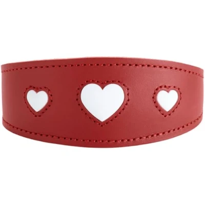 HUNTER Greyhound Collar Love, Colour: Red/Black, Soft, Robust Cowhide Leather, Individually Sewn in Hearts, Wider Shape, Padded, High, Made Germany, Size 32