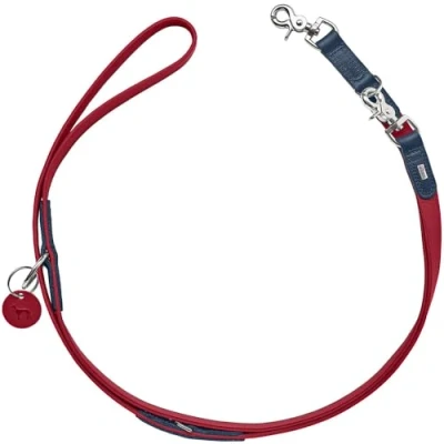 HUNTER LEMVIG Adjustable Dog Lead Colour: Red/Dark Blue, Leather, 3 Way Adjustable, Durable and Comfortable, Elegant Trendy, Made in Germany, Size: 20/200