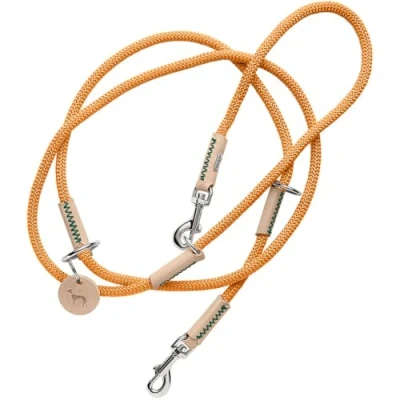 3-way adjustable: for maximum flexibility – ideal for walking, training and city tours. Comfortable and durable: soft rope with polyamide core meets robust cowhide leather - comfortable and durable. Fresh design: eye-catching colour combinations and functional leather straps with distinctive contrast stitching. Made in Germany: made with passion - quality that you see and feel. Size: adjustment options max. 200 cm. Diameter: 8 mm