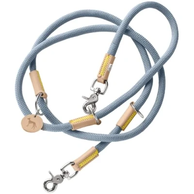 3-way adjustable: for maximum flexibility – ideal for walking, training and city tours. Comfortable and durable: soft rope with polyamide core meets robust cowhide leather - comfortable and durable. Fresh design: eye-catching colour combinations and functional leather straps with distinctive contrast stitching. Made in Germany: made with passion - quality that you see and feel. Size: adjustment options max. 200 cm. Diameter: 10 mm